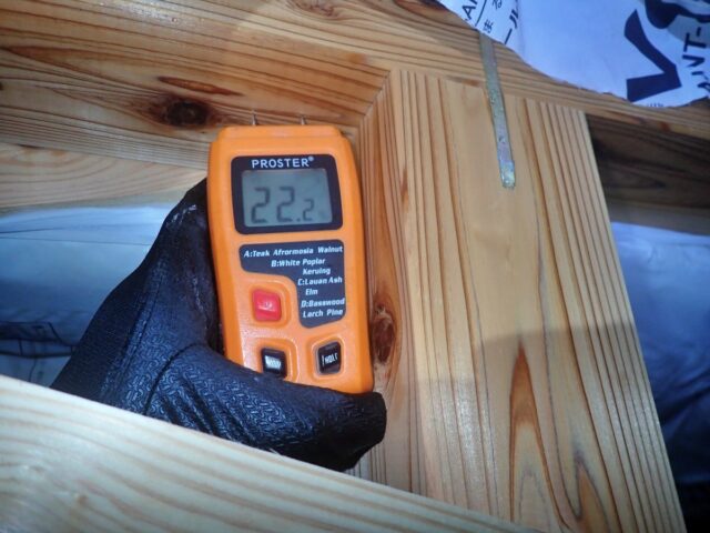 実際、断熱材は結露で濡れており、木材の含水率も高い状態でした。