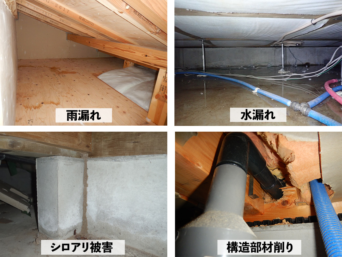 ホームインスペクションでは床下や小屋裏も調査しますので、雨漏れや白蟻被害などの状況をチェックすることができます。