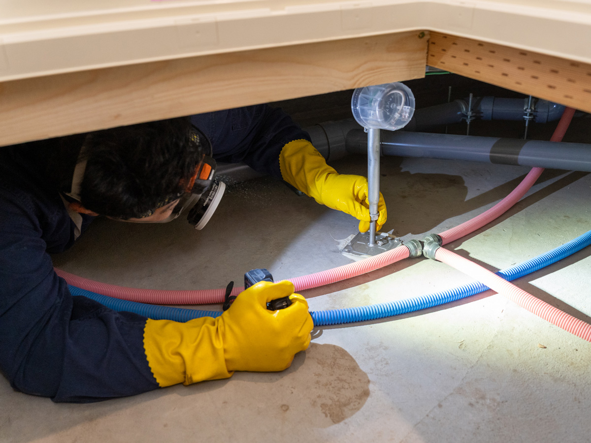 床下の調査では、配管の水漏れやシロアリによる被害、構造部材の劣化、基礎のひび割れなどを確認します。