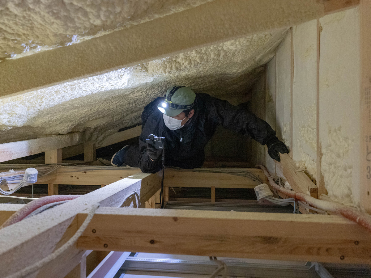 e-LOUPEでは床下・屋根裏ともに可能であれば進入調査を行い、隅々まで確認しています。