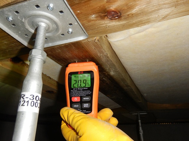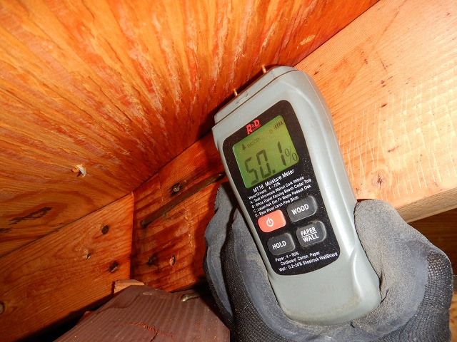 雨漏りに関しては、屋根裏や床下に入って濡れ跡や湿った木部を確認できると、どこから漏れているかを詳しく確認することが可能です。濡れている箇所に近づける場合は含水率計で数値化し、過去の雨漏れか現在も進行中かを判断することができます。